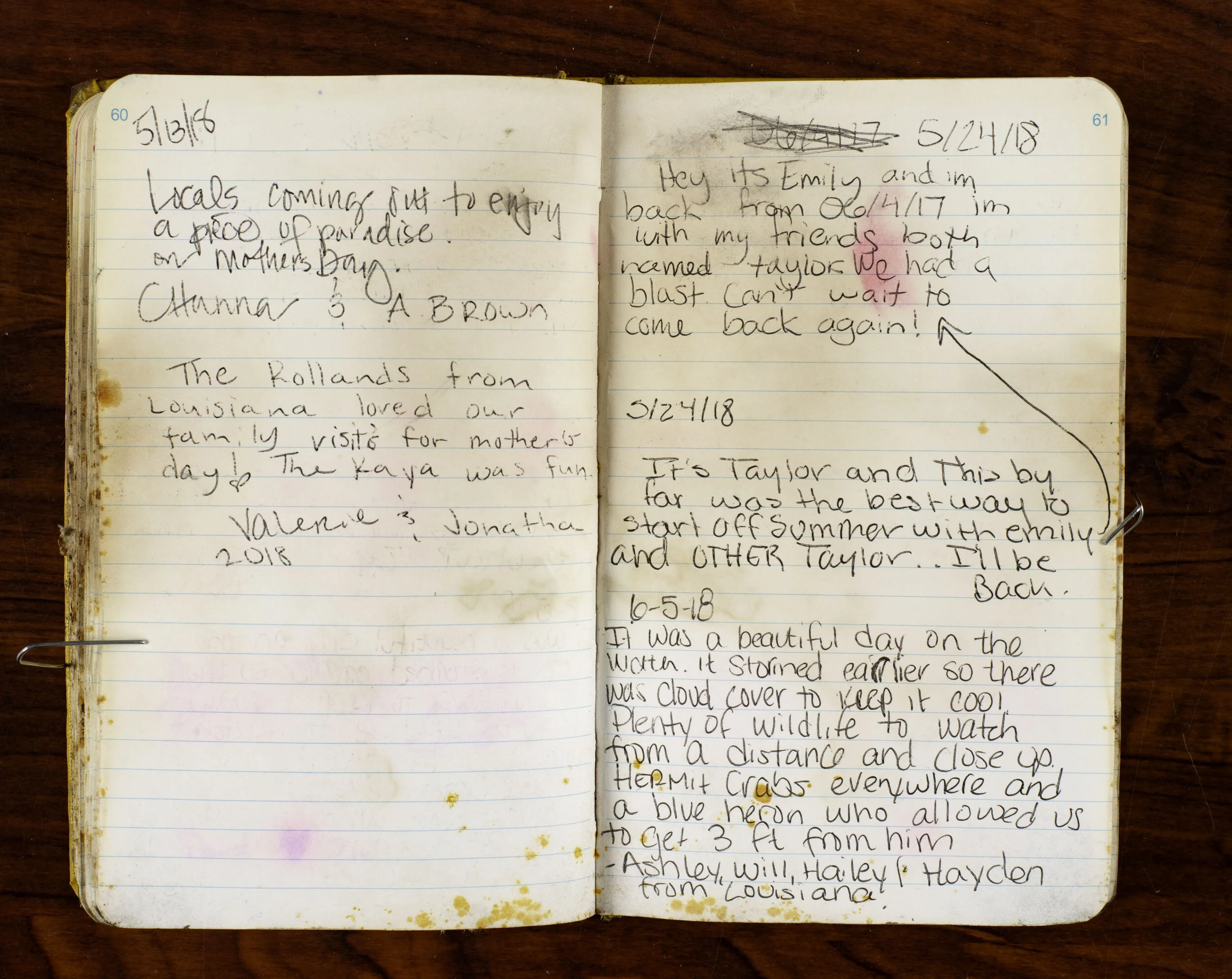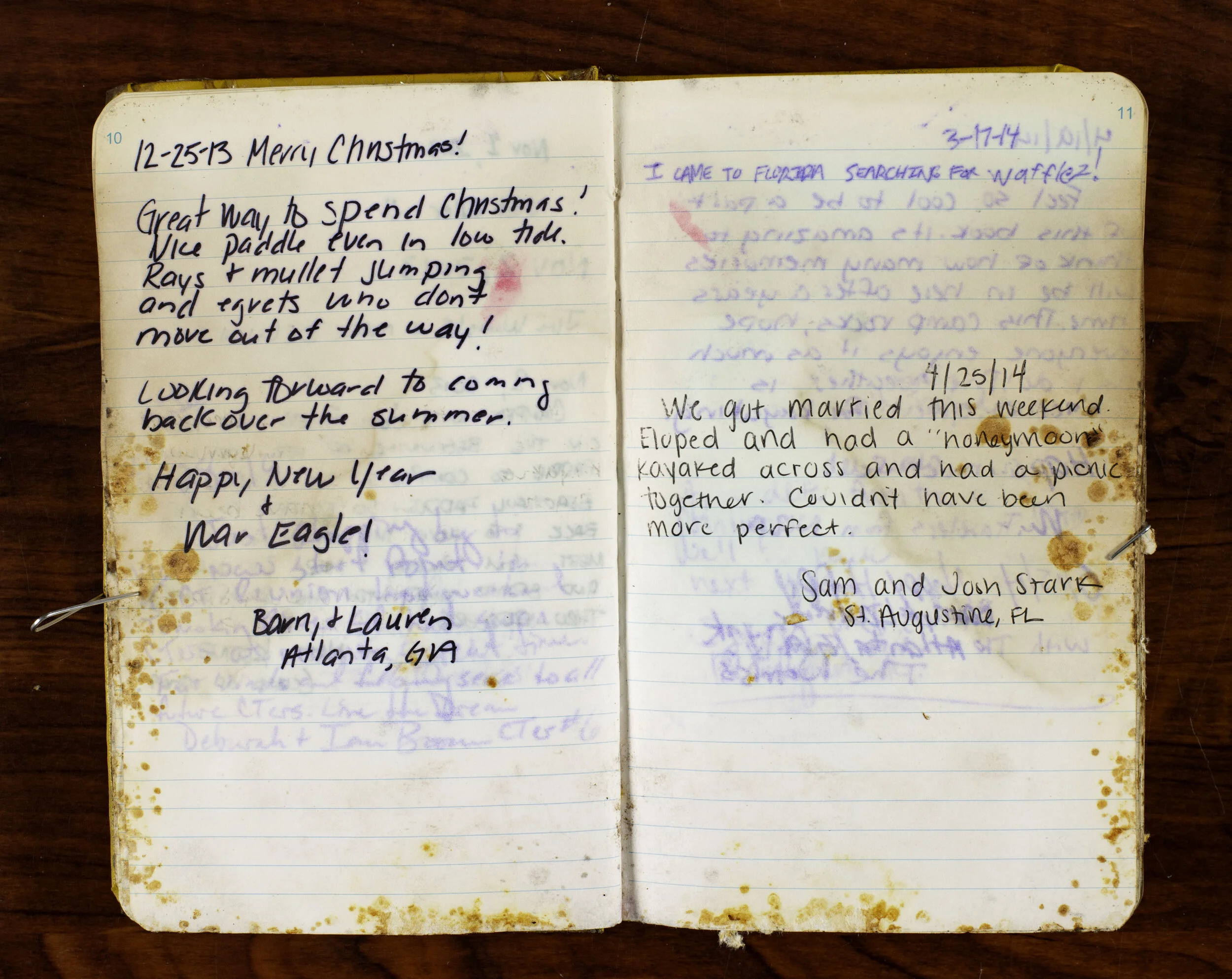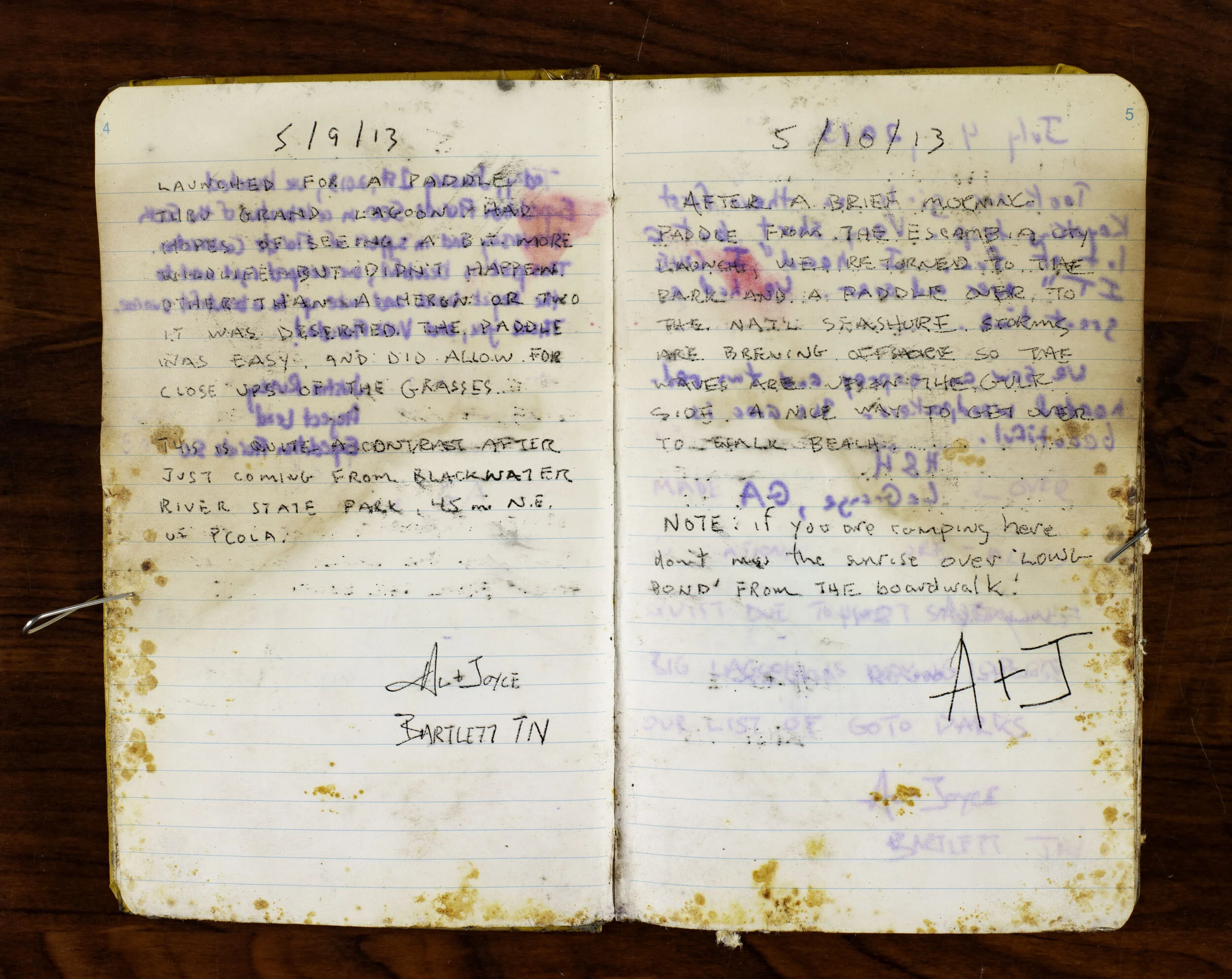 CT Paddlers Log #2 was a victim of Hurricane Sally when it tore through Big Lagoon State Park on September 22, 2020. Although severely damaged, Diane Rickman-Buckalew rescued the soggy log book and carefully dried it out. Michael Duncan then photographed all the pages to preserve this historical document. Some pages are difficult to read, but others are clearly legible. Left click on the pages below and enjoy!