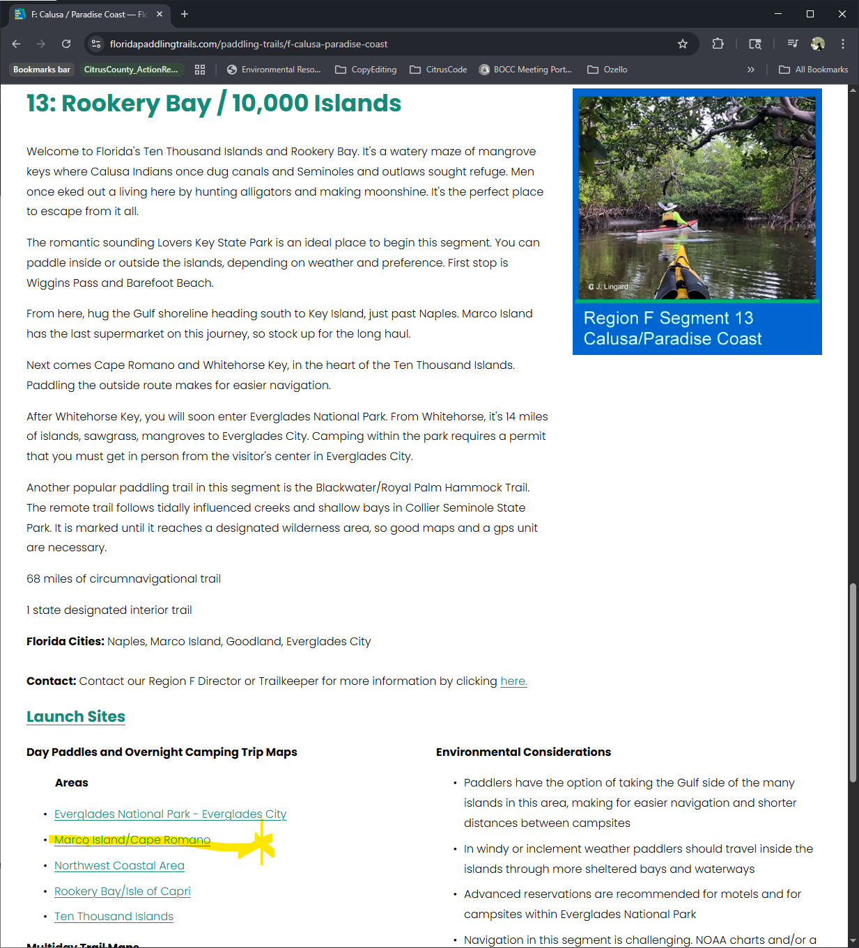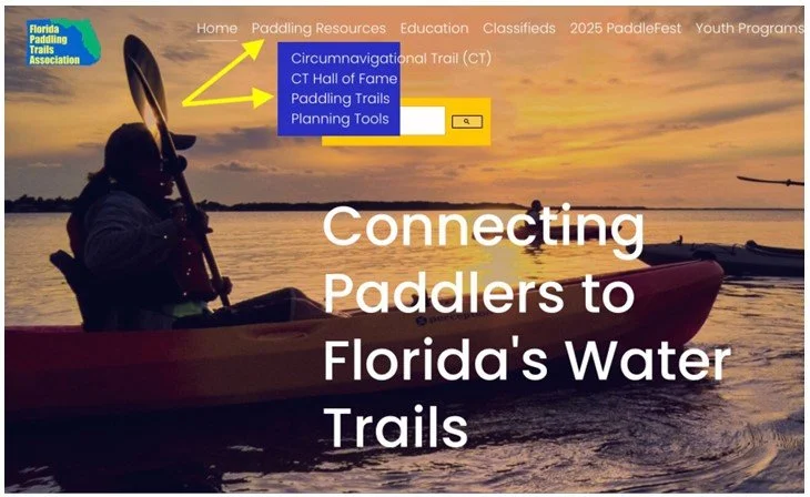 Go to the FPTA website. (A) Click on the menu bar. (B) Select “Paddling Resources.” (C) Select “Paddling Trails.”