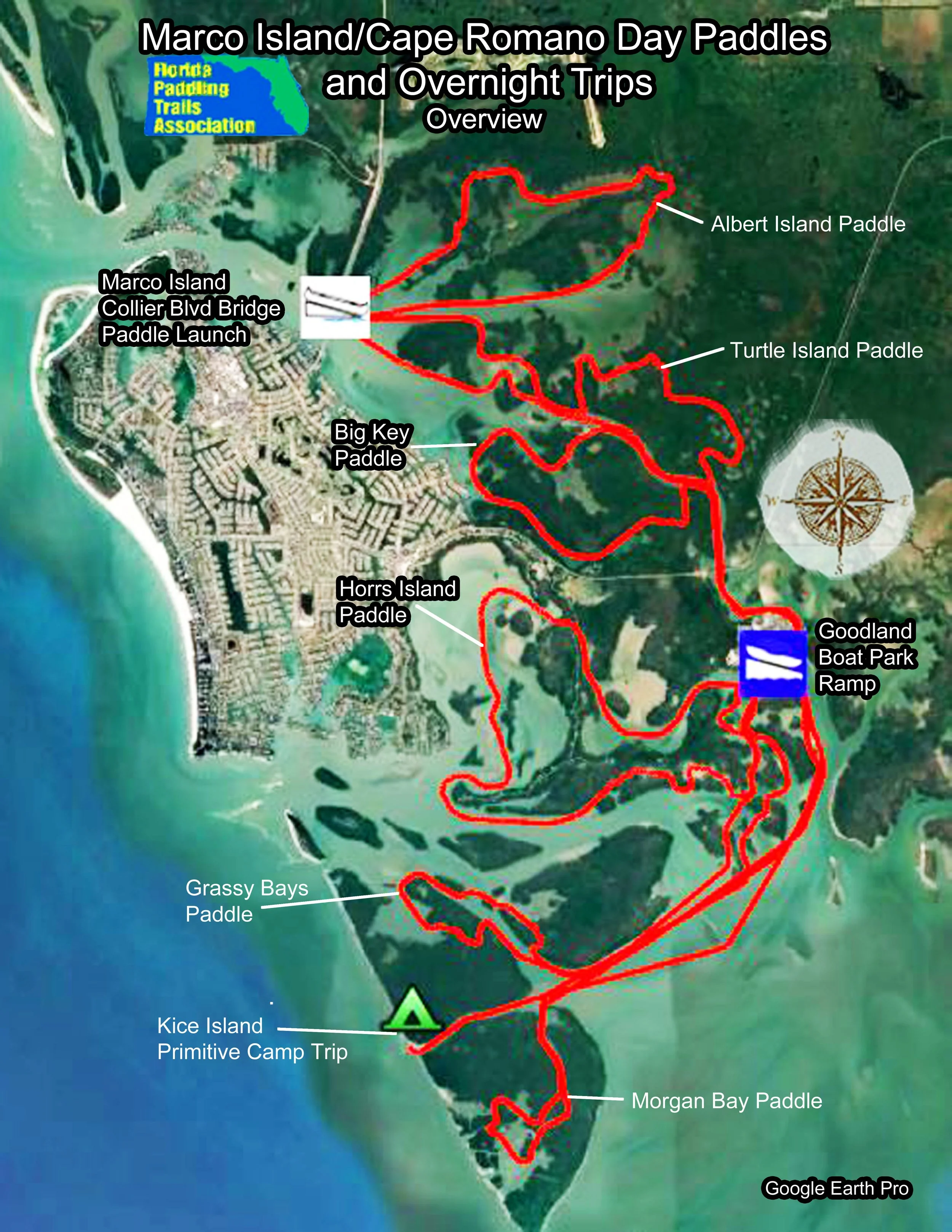 KMZ: For trip planning and navigation. To download the KMZ track file, click on the KMZ button. Once downloaded, locate the file on your computer and click on it. The file will then open in Google Earth. You must have the Google Earth or Google Earth Pro app on your computer or device. KMZ routes are for general navigation purposes only and may need to be adjusted for tidal and weather considerations.