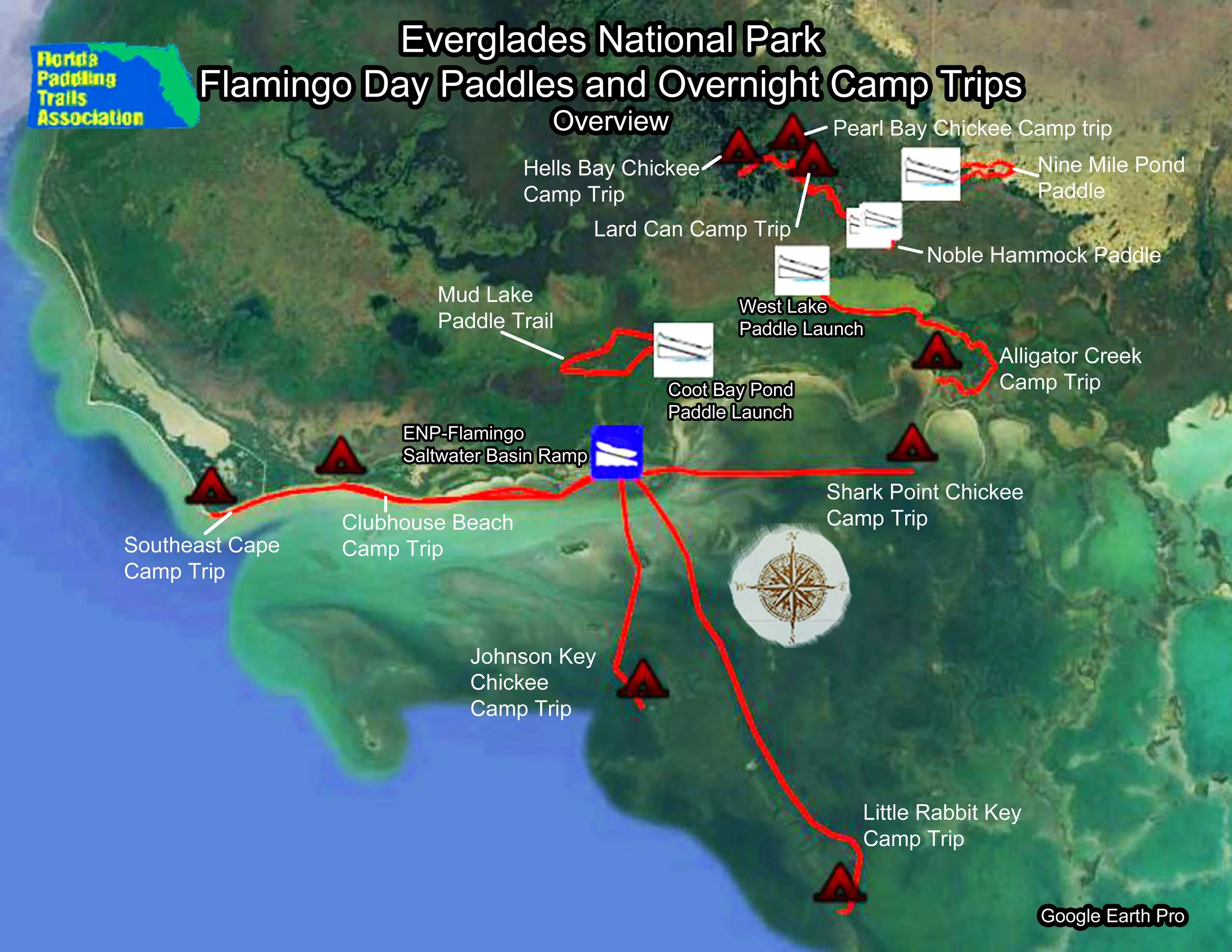 Before planning any paddling trips in Everglades National Park, contact the Park Service ((305) 242-7700) and visit the ENP website Trip Planner to make sure all trails and, if camping, chickee/campsites are open. Occasionally some trails and wilderness campsites may be closed due to maintenance or storm damage. All camping is done through a permit system. Beginning November 17, 2020, campers may make advanced reservations through Recreation.gov. Advanced reservations are available on a rolling basis, three months in advance of the start date. Please refer to the Everglades National Park website carefully for more details.